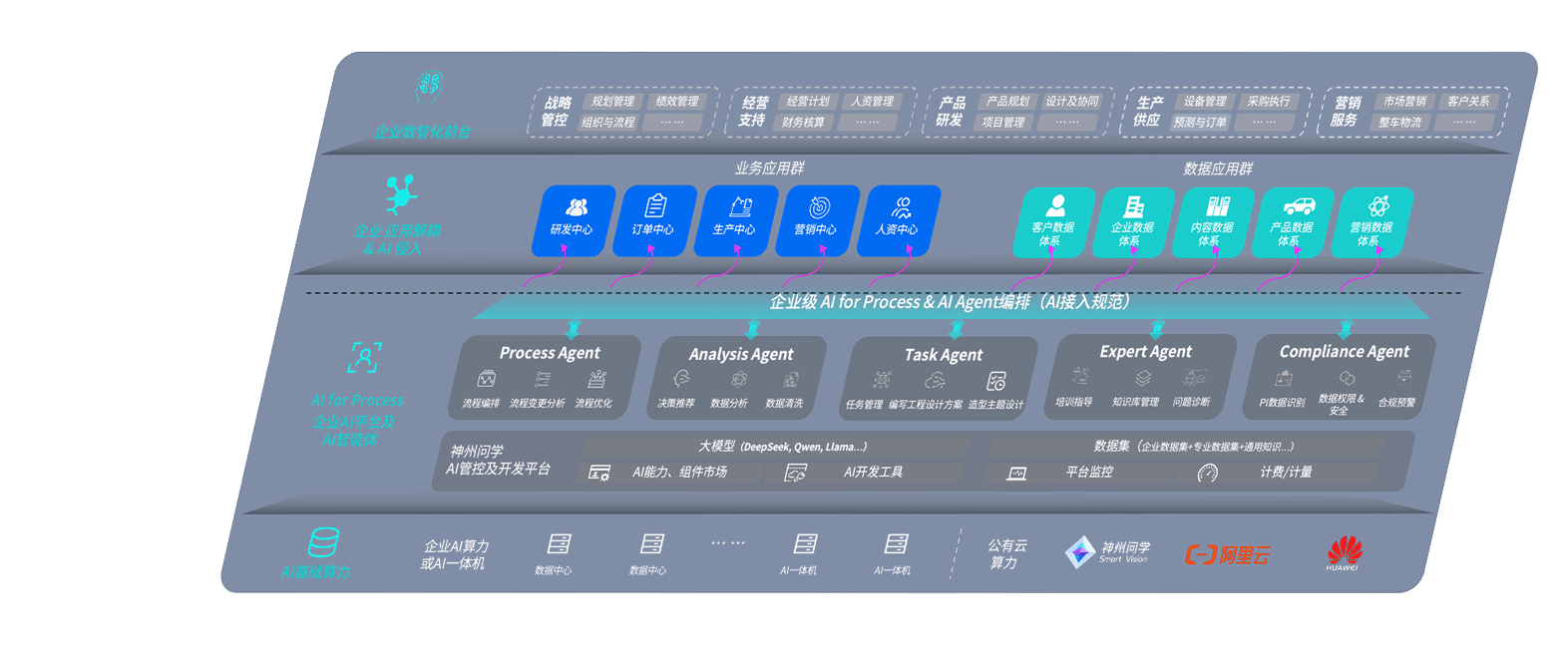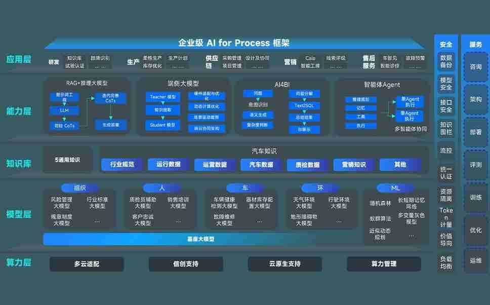 端到端的一站式AI工作空间深度融合了从企业战略规划到日常经营的全流程业务板块,,定向解决车企内部领域多、、部门多、、链条长、、场景碎片化等难题,,,支持车企快速构建以AI为核心的生产力写作体系,,,实现任务执行与AI能力的无缝集成与交互